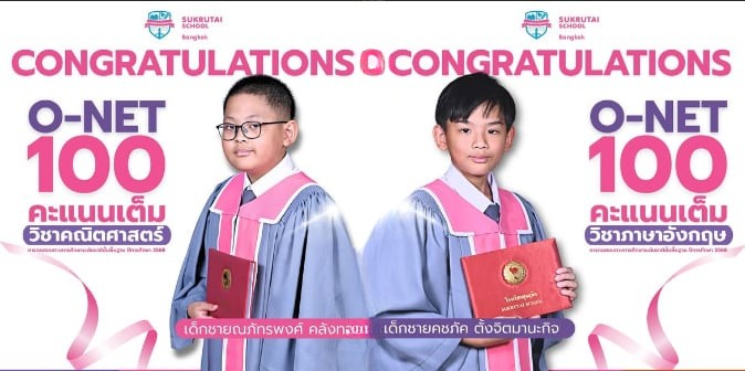 ขอแสดงความยินดีกับนักเรียนคนเก่ง โรงเรียนสุขฤทัย กับความสำเร็จในการทำคะแนน O-NET ได้ 100 คะแนนเต็ม ในการทดสอบทางการศึกษาระดับชาติขั้นพื้นฐาน ปีการศึกษา 2568